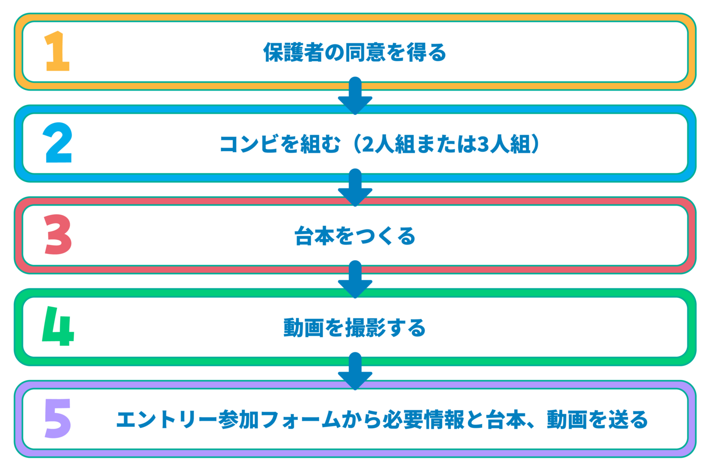 ■ コンビは2名または3名。メンバーは同じ校種内に限る。保護者の同意が必要です(エントリーフォーム内のチェックボックスにて確認)。